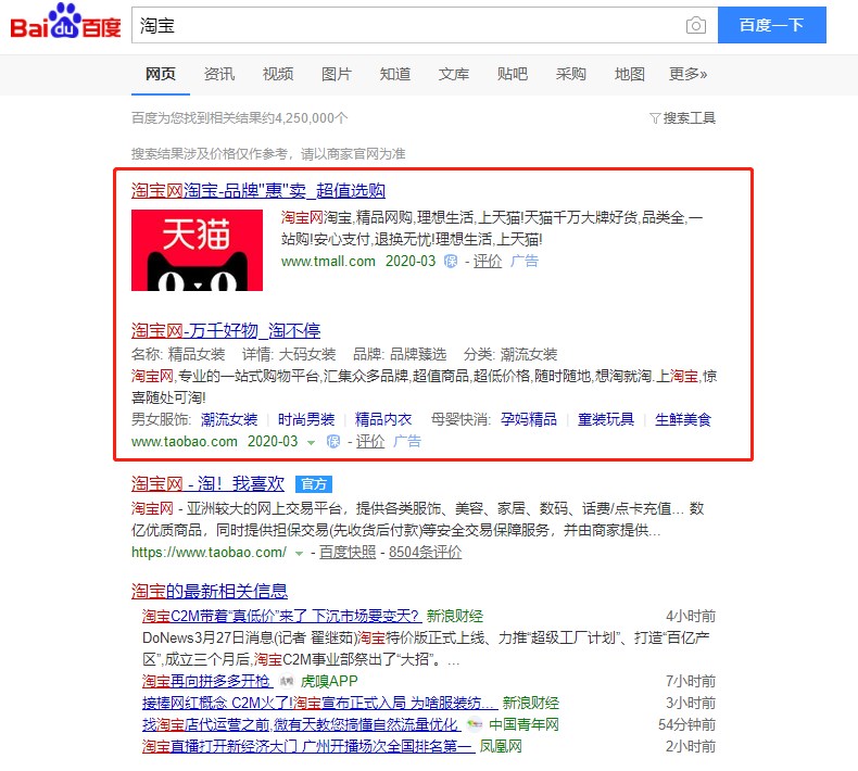 競價廣告一般出現(xiàn)在搜索結(jié)果前幾位,并且?guī)в小皬V告”標(biāo)識。這種類型的廣告是按點擊次數(shù)付費(CPC,CostPer Click),即如果用戶產(chǎn)生點擊行為進入到企業(yè)的廣告頁面,就有一次計費。
