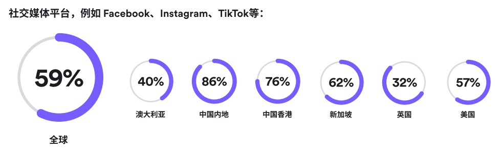 全球59%的消費者則會在社交媒體中受KOL、內(nèi)容創(chuàng)作者等的影響,直接從海外社交媒體平臺進行商品購買。