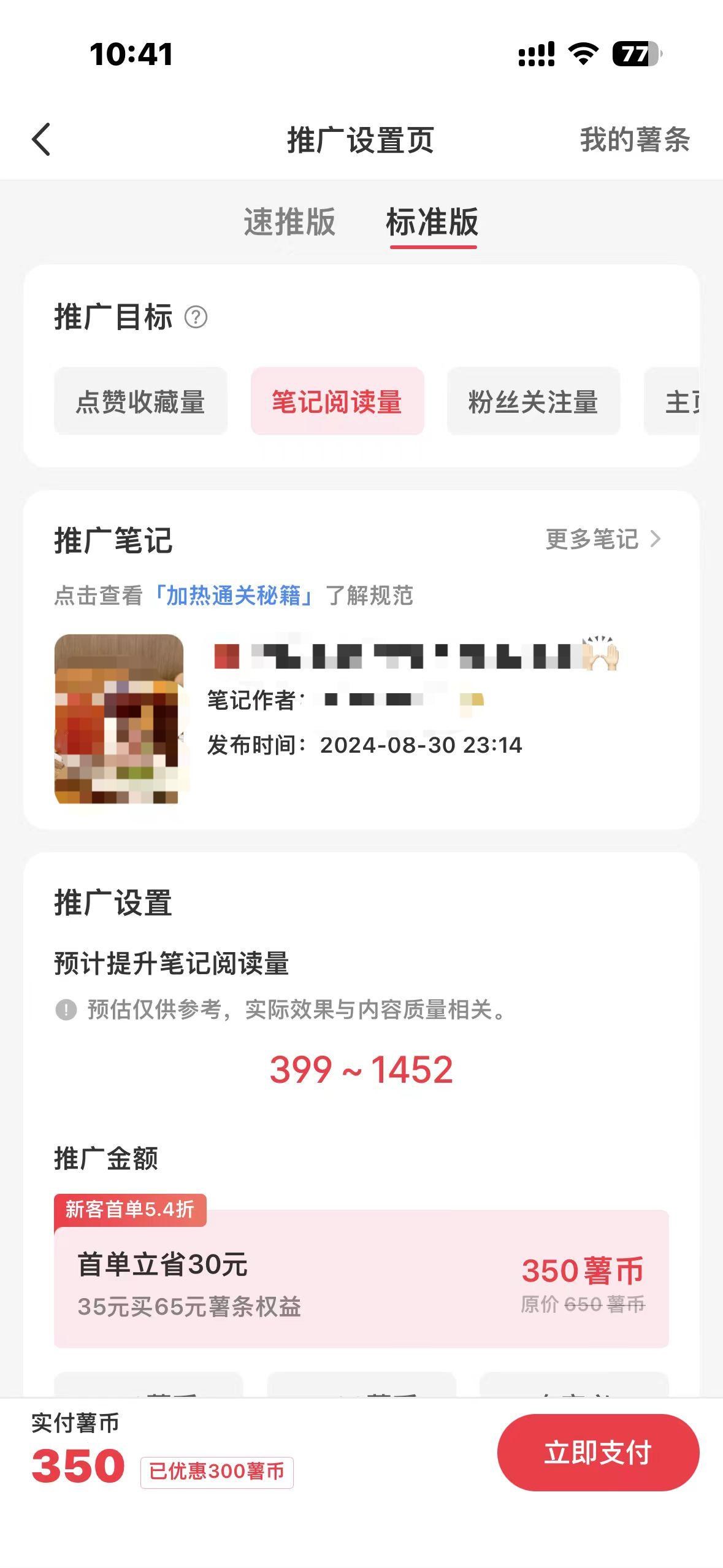 薯條是小紅書為個人和中小商家量身打造的自助式廣告投放產(chǎn)品。操作簡便,用戶只需在APP端輕松幾步即可完成投放。其主要目標包括提升筆記閱讀量、增加點贊收藏和粉絲關(guān)注。