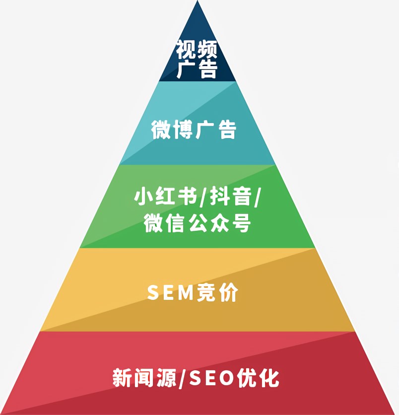 目前的線上媒體廣告投放渠道按價格從高到低排序,可以分為以下五個等級:互聯(lián)網(wǎng)視頻廣告、微博廣告、小紅書/抖音/微信公眾號、SEM競價、新聞源/SEO。