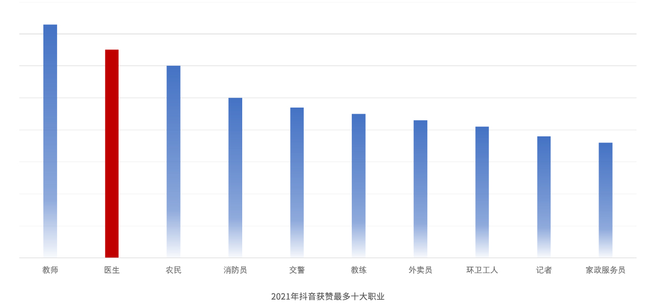 其中2021年抖音獲贊最多十大職業(yè)中醫(yī)生的職業(yè)排名在第二,短視頻讓健康醫(yī)學知識變得觸手可及。
