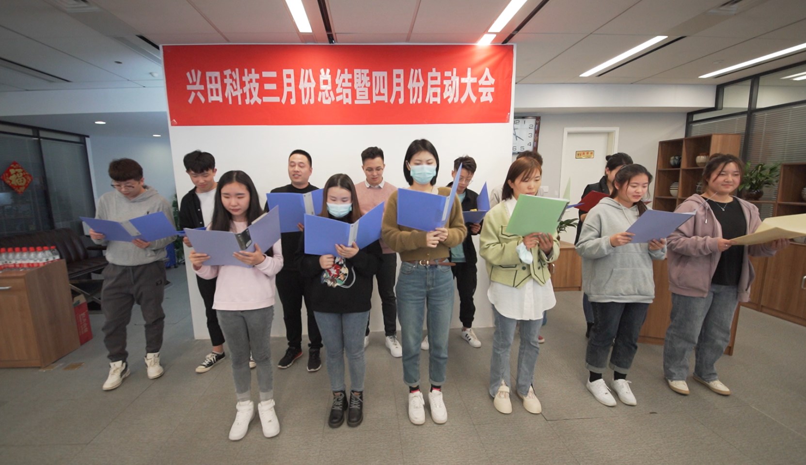 “加入興田,成為一名興田人是我的選擇!”新員工為興田科技帶來了年輕活力的新鮮血液。大會上,興田科技新入職的家人們一起宣誓: