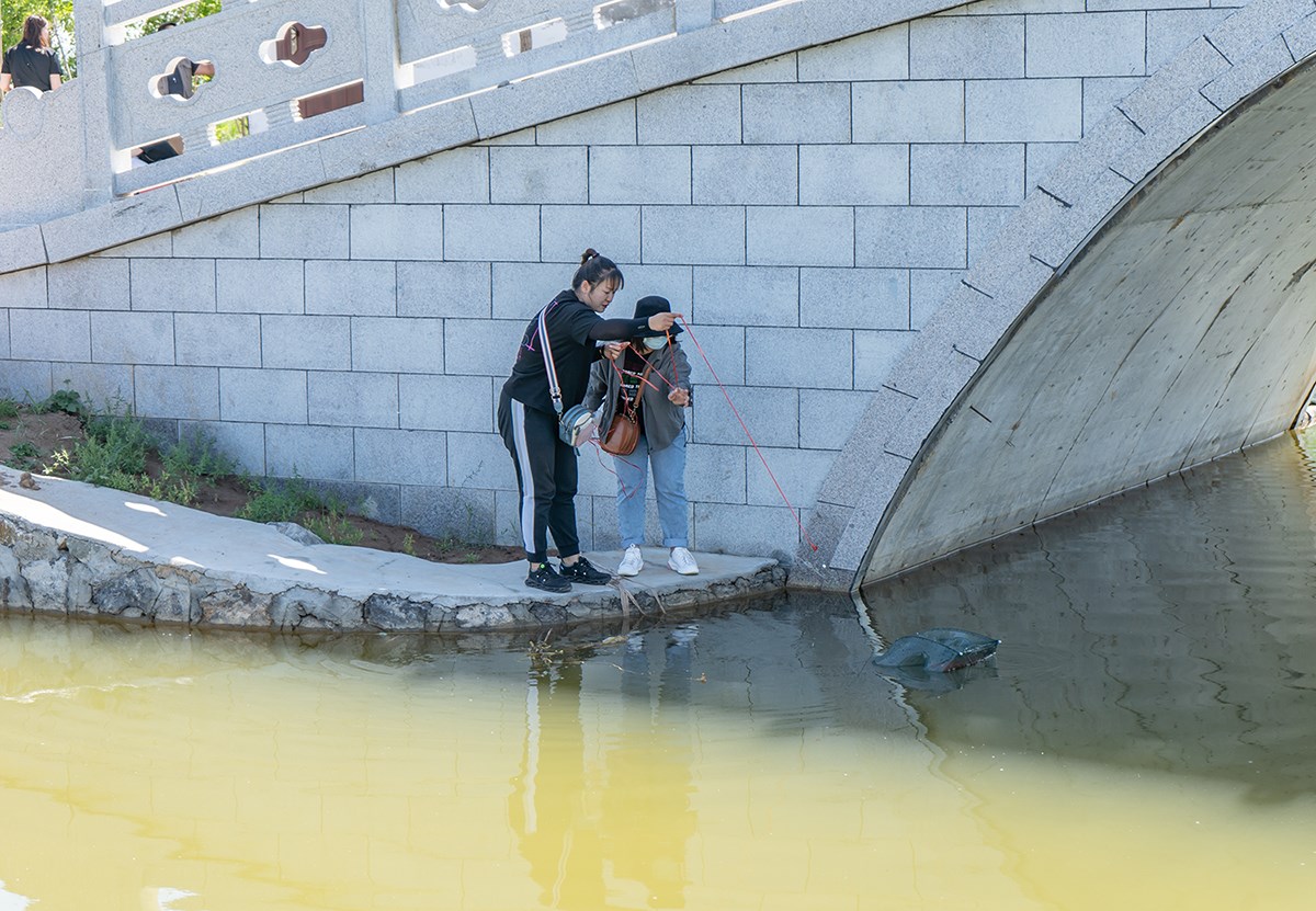 放下魚(yú)食和捕魚(yú)網(wǎng),
