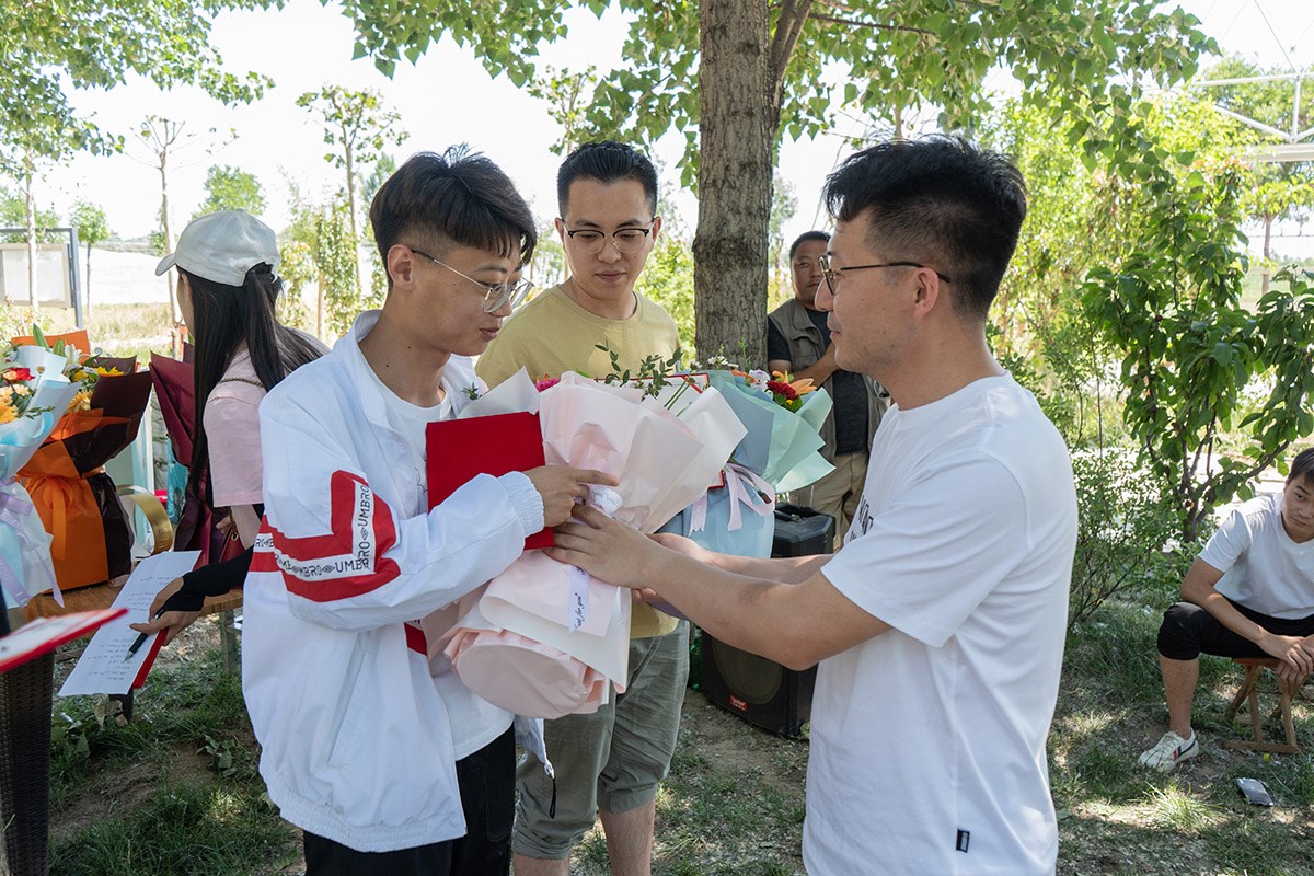 為轉(zhuǎn)正的小伙伴們頒發(fā)證書(shū)及鮮花,