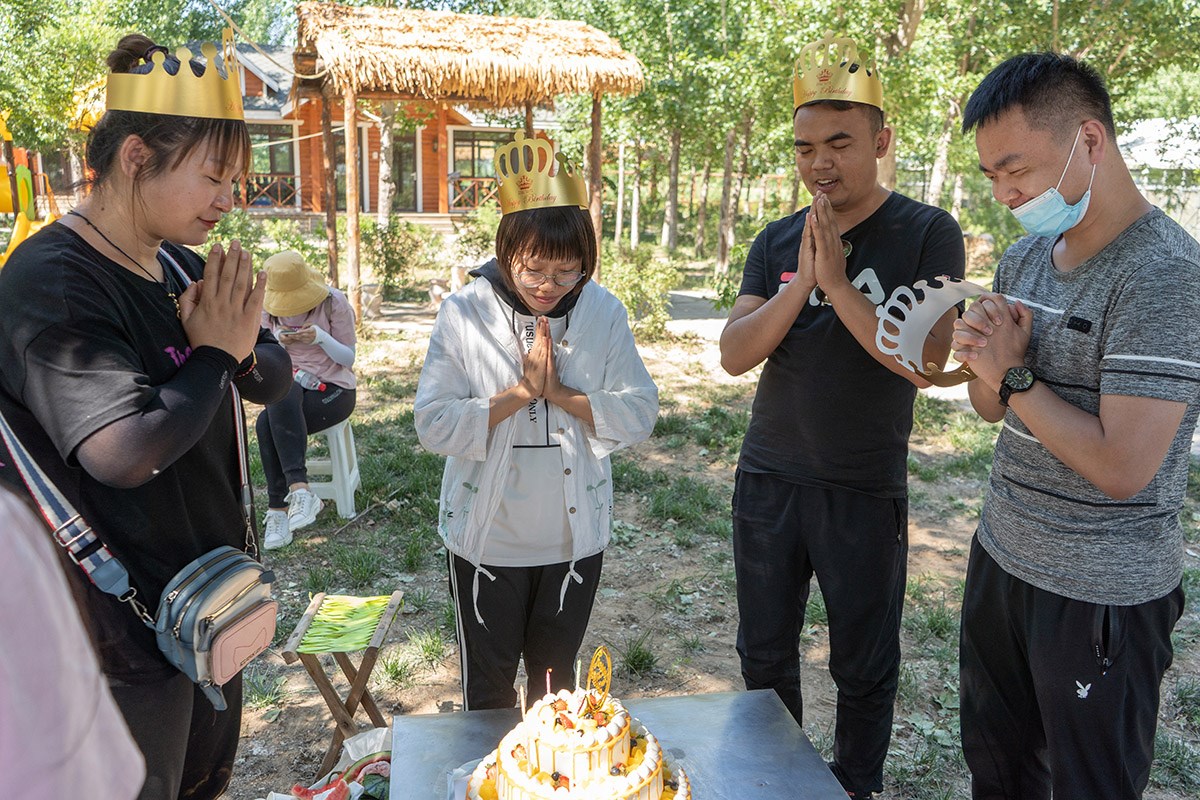 大會(huì)的最后,是每月一次的員工生日會(huì),