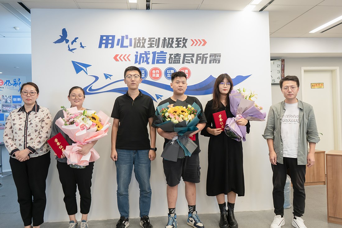 新員工入職歡迎儀式結(jié)束之后,緊接著的是員工轉(zhuǎn)正儀式,各位領(lǐng)導(dǎo)為轉(zhuǎn)正員工頒發(fā)了榮譽(yù)證書(shū)及鮮花,歡迎各位正式成為一名興田人。